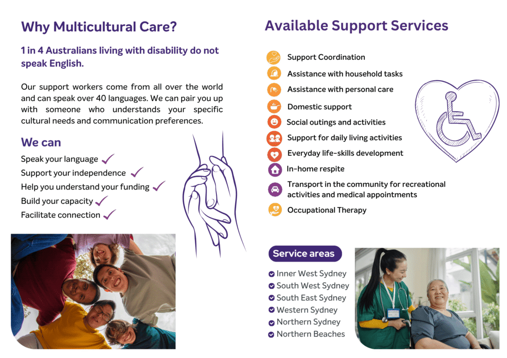 Multicultural Care is currently registered for six supports targeted at assisting people with a disability.